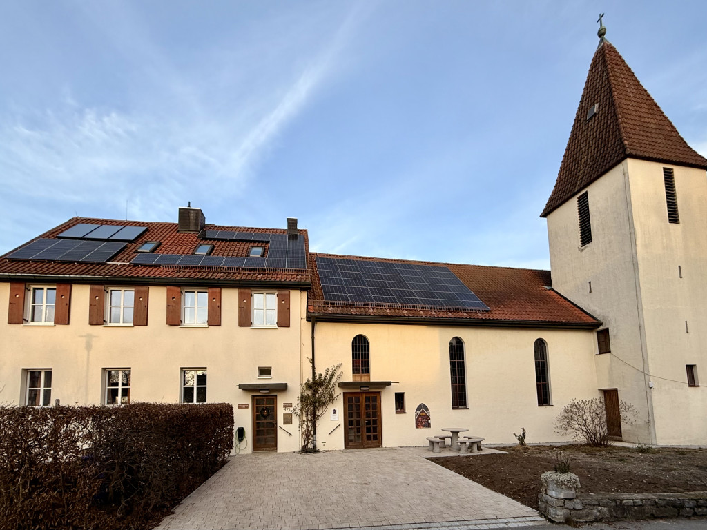 Das zweite Bauprojekt war die Photovoltaikanlage auf den Dächern von Pfarrhaus und Kirche. Gemeinsam mit der Bürgerenergie Bayerwald konnten wir dieses Projekt realisieren. Für Besucher:innen unserer Veranstaltungen steht eine Lademöglichkeit für E-Autos zu Verfügung. Außerdem werden wir im Frühjahr 2026 auf einen elektrischen Gemeindebus umsteigen.