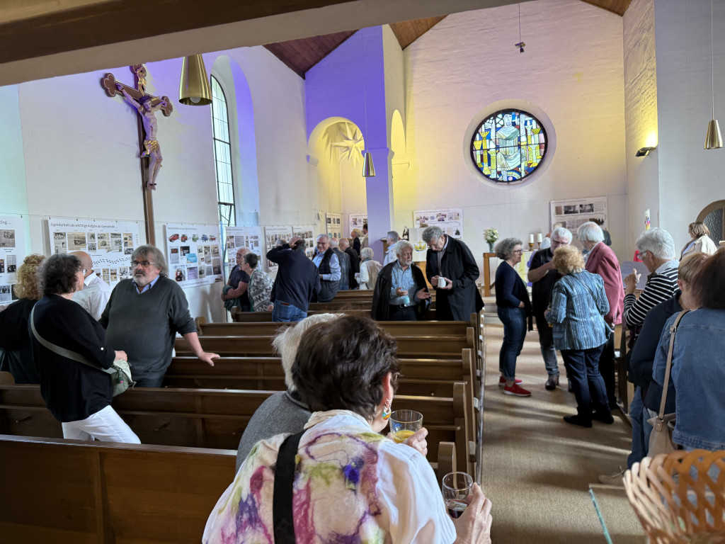 Eines der zentralen Elemente in diesem Jahr war unsere Jubiläumsaustellung in der Kirche. Viele Chronik-Ordner wurden gewälzt, Zeitzeugen vor greenscreens interviewt, Storys gebastelt und mit QR-Code versehen und vieles mehr.