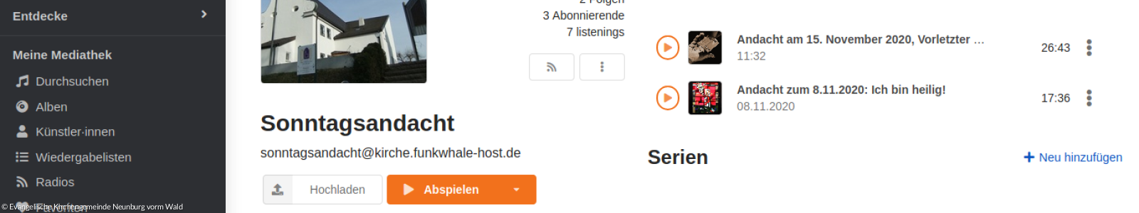 Nun hat sich auch eine Firma gefunden, die beide Instanzen hostet. Jetzt stehen Sie auch den Gemeinden des Dekanats offen: https://kirche.funkwhale-host.de und https://kirche.peertube-host.de bieten Audio und Videodateien aus dem Dekanat zum anhören, anschauen und runterladen.