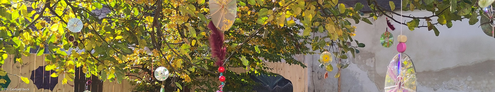 Zu Beginn lud Pfarrer Gerhard Beck zu einem gemeinsamen Rundgang durch den Kirchgarten ein. Zwischen Beeten und Wegen waren die Kunstwerke zu finden – farbenfrohe Windspiele, Gebetsfahnen, bemalte Steine mit Glaubenssymbolen und viele weitere Arbeiten, die das Thema „Wind“ und die Vergänglichkeit aufgreifen. Anschließend führte Pfarrer Beck in der Kirche in den Abend ein und begrüßte die Gäste.