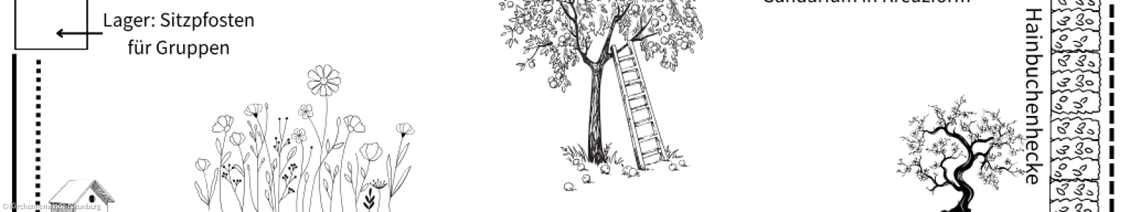 Unsere Idee: Ein blühender Garten im Zeichen des Kreuzes. Mit Blumenwiese, Sandarium, Nistkästen und Sitzgelegenheiten aus Totholz.