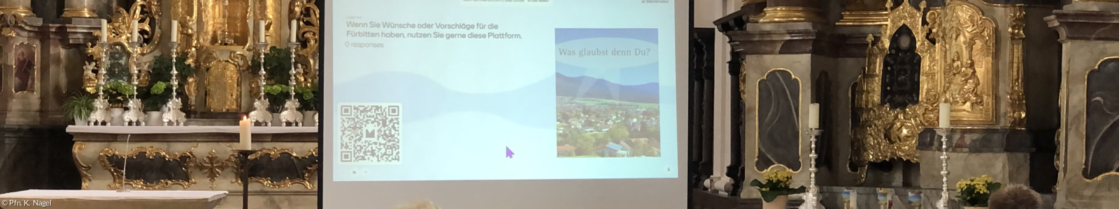 Die Fürbitten konnten bei diesem Auftaktgottesdienst die Gemeindeglieder mit gestalten: mithilfe eines QR-Codes konnten sie Themen eingeben, die dann als Fürbitte formuliert wurden. Friede, Gerechtigkeit und Ökumene lagen dabei der Gottesdienstgemeinde besonders am Herzen.